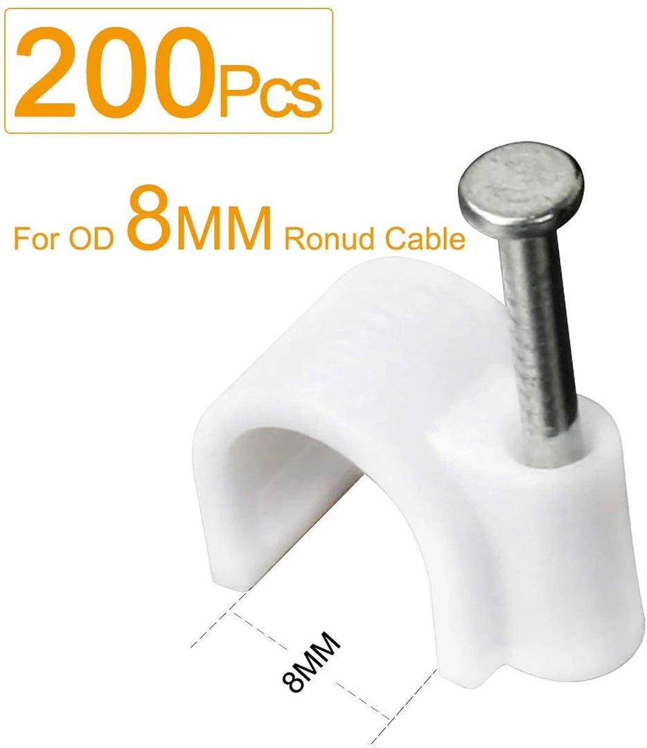 Cable Clips 8mm 200pcs White,SHD Cable Tacks Nail In Clamps Cable Straps Wire Staples Round Cord Management Cable & Cable Management