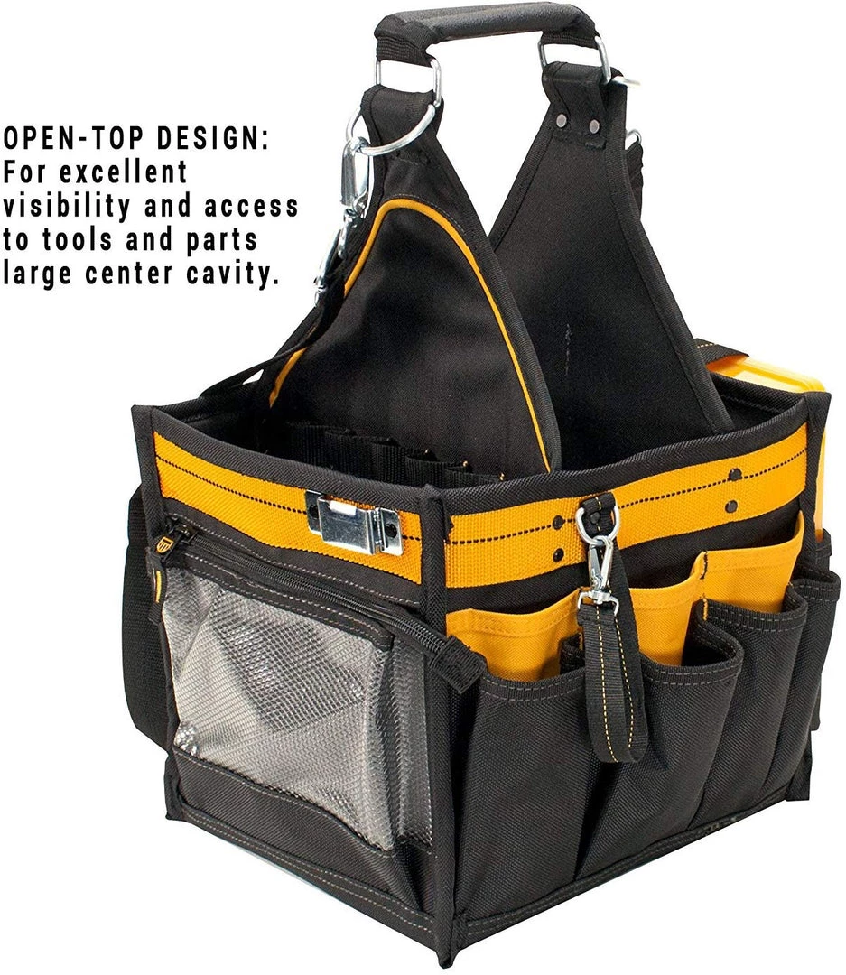 - OPEN-TOP DESIGN TOOL BAG: This tool bag features an open top design for excellent visibility and access to tools and parts in large center cavity.