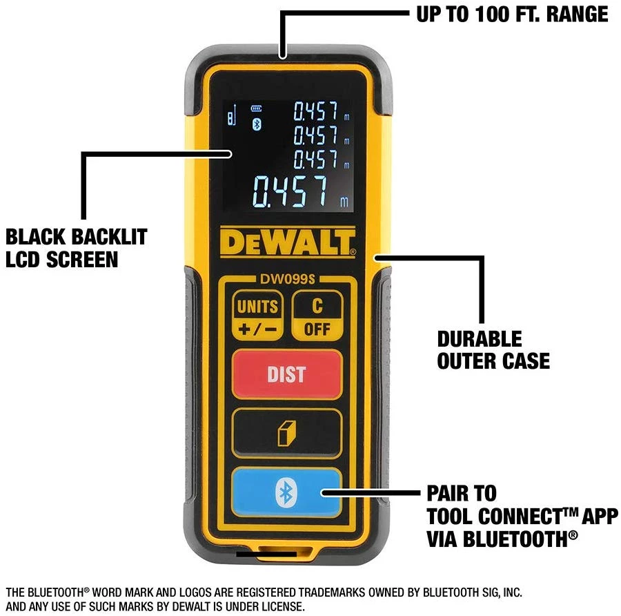 DEWALT Laser Measure Tool/Distance Meter, 100-Feet With Bluetooth (DW099S)