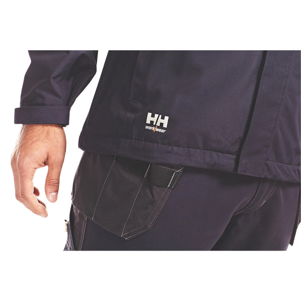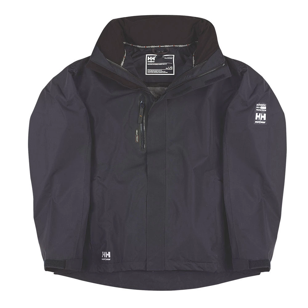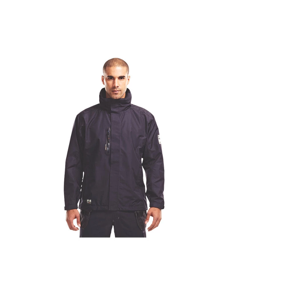 Waterproof breathable jacket with foldaway hood, storm flap and storm cuffs with velcro fastening. 150g/m². Constructed from Helly Tech waterproof breathable fabric.