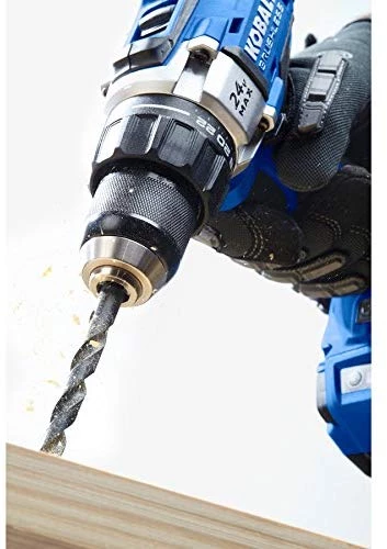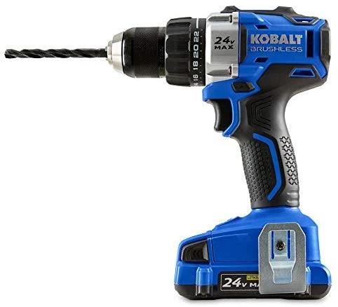Kobalt 24-volt max 1/2-in cordless drill/driver comes with a 24-volt max 2.0Ah Li-ion battery, charger, belt clip, double-ended driver bit, bit holder, auxiliary handle and soft bag