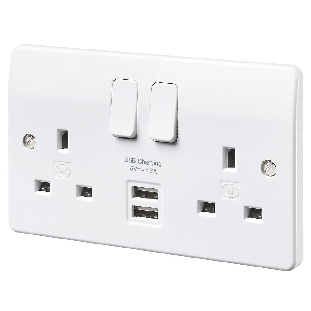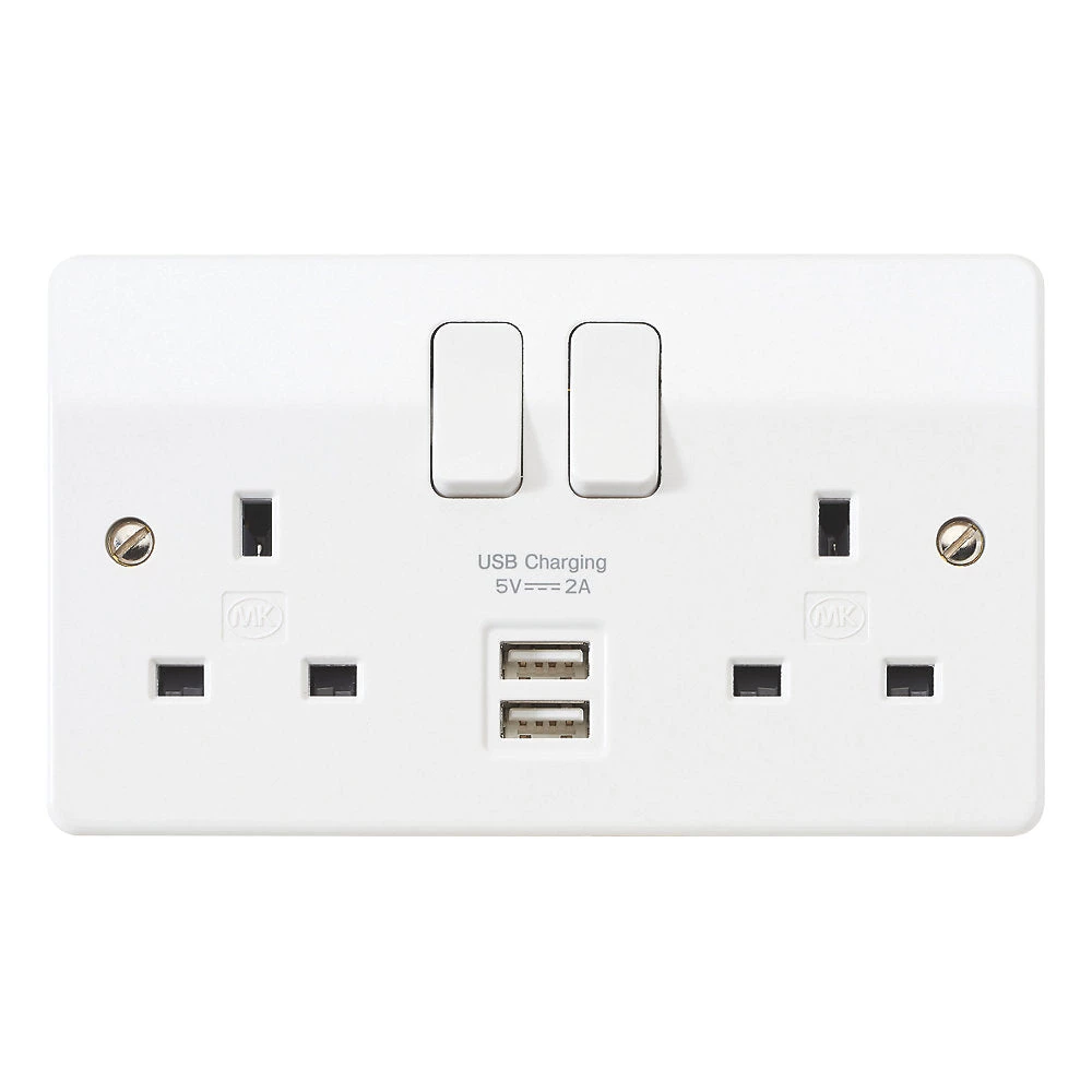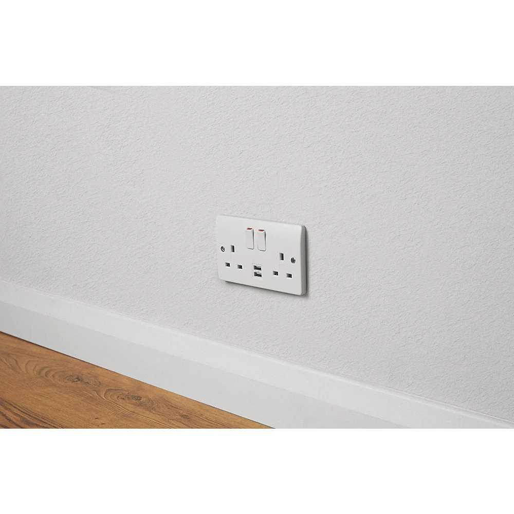 Switched socket with optimum charging compatibility across a wide range of devices. USB 2.0 and 3.0 compatible. 3-pin operated shutter.