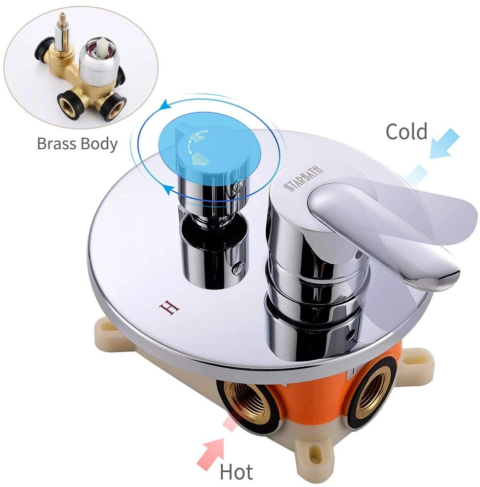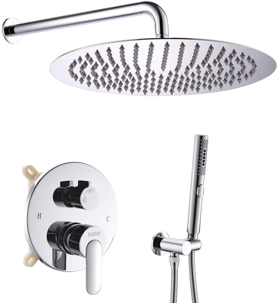 Pete’s Tools & Home Improvement Bathtub & Shower Systems Starbath SS02Y Round 12 Inch Wall Mounted Shower System With Rain Shower Head And 3-Setting Handheld Shower,Shower Faucet Rough-in Mixer Valve And Trim Included Shower Combo Set, Chrome