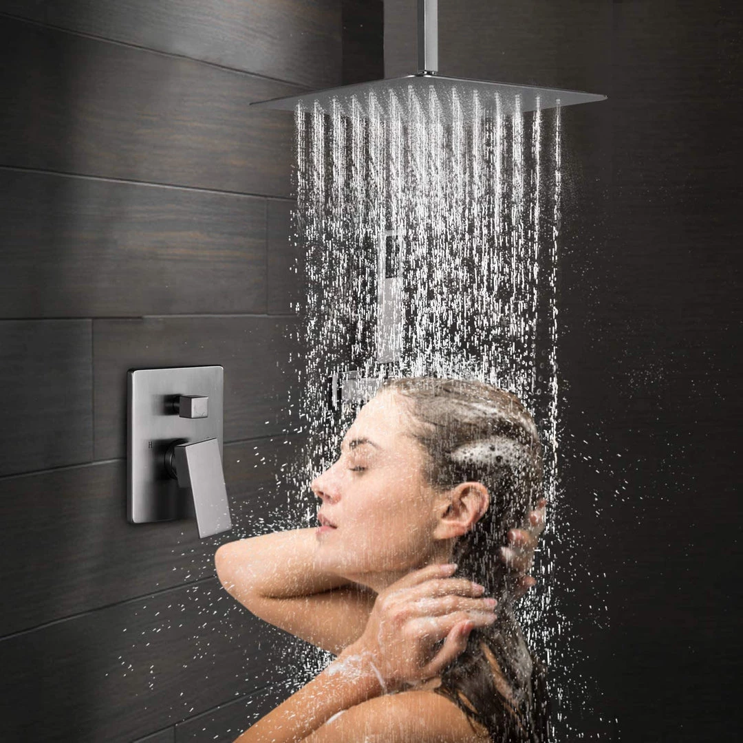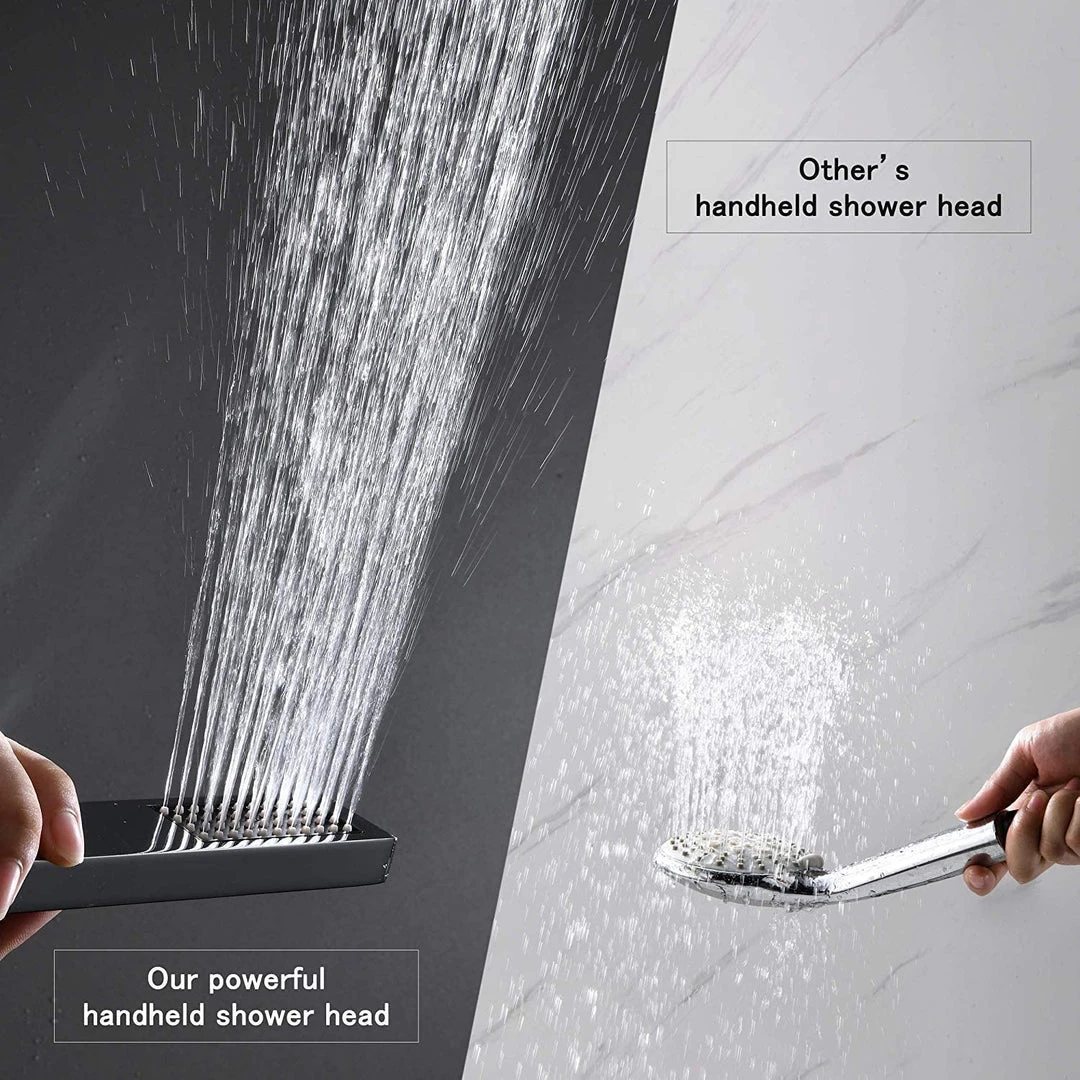 - 12 inches square rain shower head and handheld shower head increases the water pressure by 100%,offer consistent powerful shower even under low water pressure we guarantee that this will bring you an unexpected high water pressure