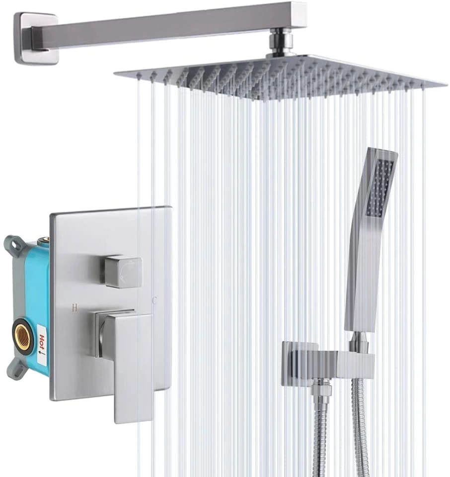 Pete’s Tools & Home Improvement Rugus Shower System,Luxury Rain Mixer Shower Combo Set Wall Mounted Rainfall Shower Head System,10 Inch Square Rain Shower Head,Brushed Nickel(Contain Shower Faucet Rough-in Valve Body And Trim) Bathtub & Shower Systems