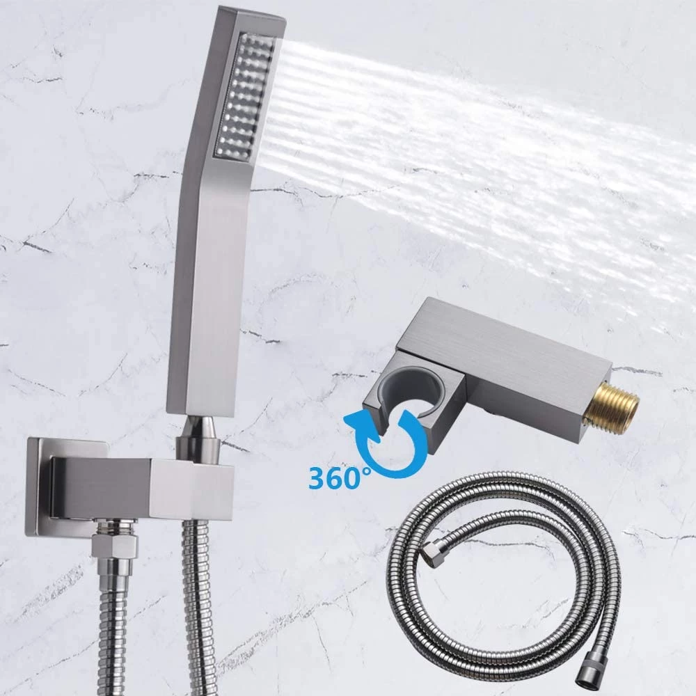 - Includes:10 inch Square rain shower head, handheld shower head, 15 inches shower arm, 1.5M shower hose, shower holder, water control valve