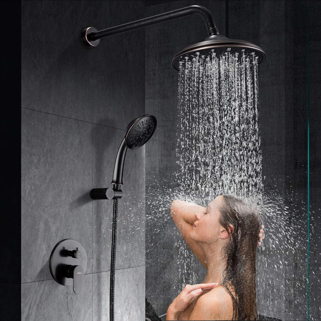 - The elegant oil rubbed bronze finish and sleek look shower system complements any décor