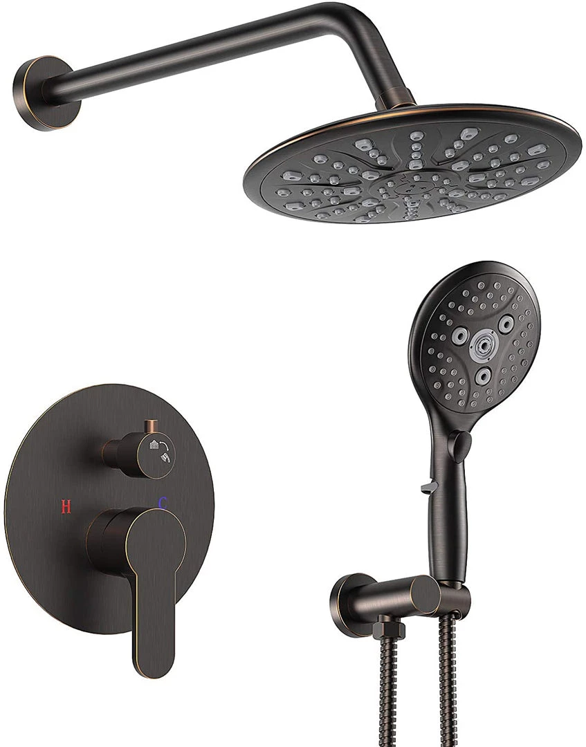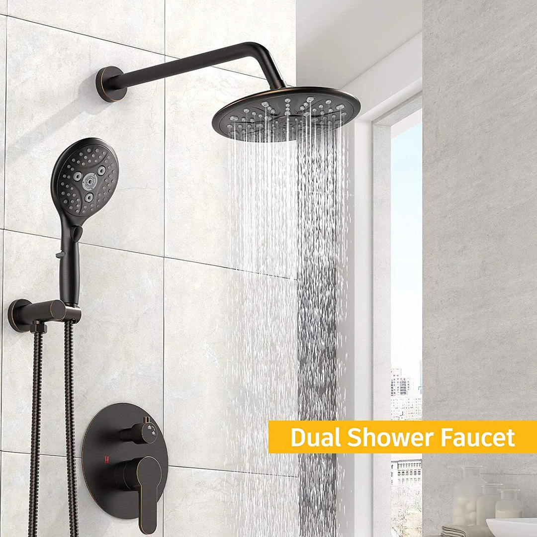 - 6 Settings Handheld Shower and Rainfall Shower Head. Using multi-functions hand shower and large showerhead coverage to provide a strong high water pressure even under a low water pressure.