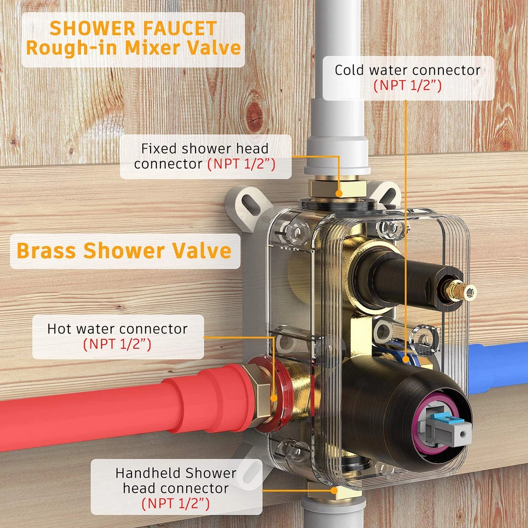 - cUPC Certificate: Pressure balancing valve cartridge made of solid brass, high quality no leaked. Monitoring the temperature of the shower between hot and cold to prevent burns at all times.
