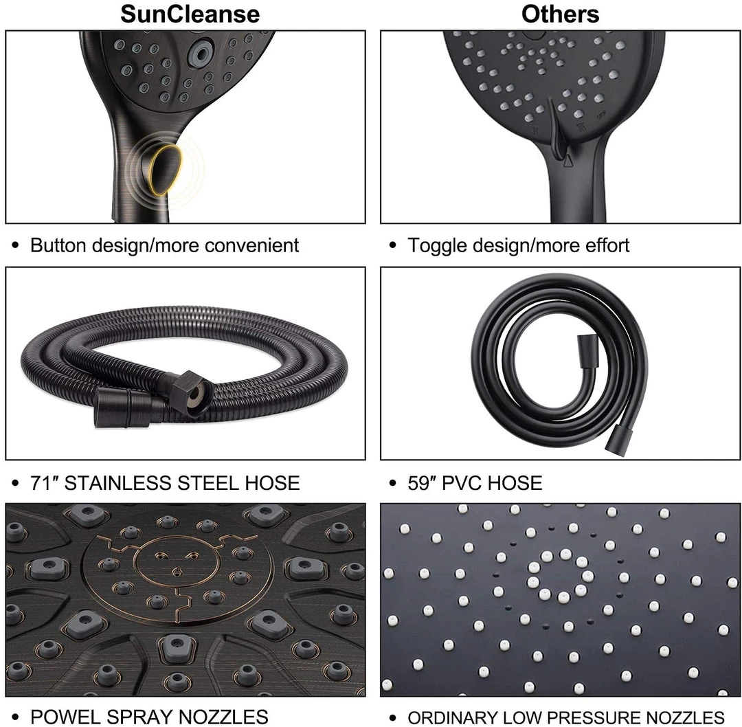 Pete’s Tools & Home Improvement SunCleanse Oil Rubbed Bronze Shower System, Shower Faucet Sets Complete With Rain Shower Head And 7-Settings Handheld Shower Spray, Included Rough In Valve And Trim Kit Bathtub & Shower Systems
