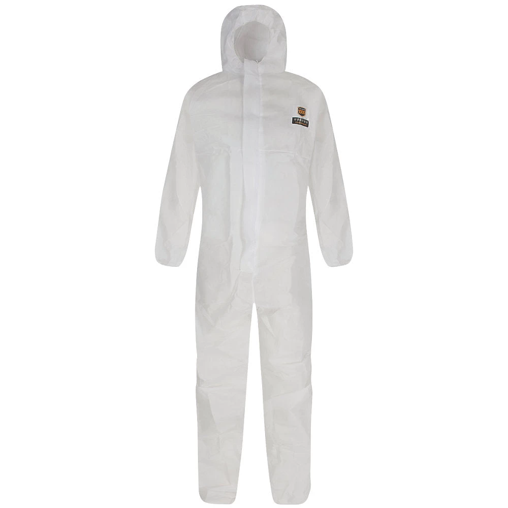 Designed to offer lightweight, comfortable protection in a wide variety of applications where protection from particular hazards through to liquid chemical splash, flames and sparks are required. 2-way zip for quickly and easily putting on and taking off in an emergency. Fully elasticated hood, ankles and wrists. 60 g/m².