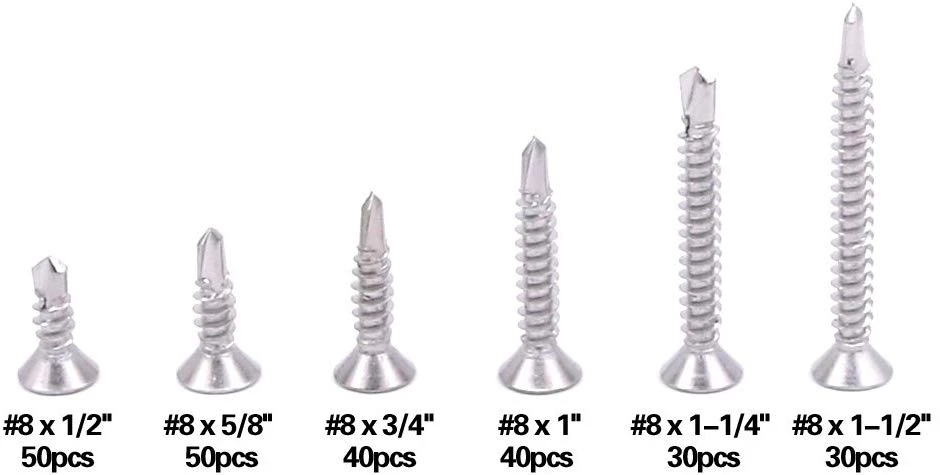 - Â The Package Contains 6 Sizes, Included: #8 x 1/2”, #8 x 5/8”, #8 x 3/4”, #8 x 1”, #8 x 1-1/4”, #8 x 1-1/2”;