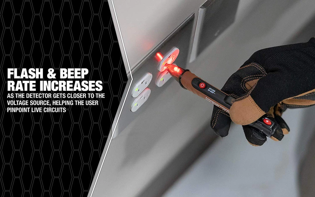 - PINPOINTS LIVE CIRCUTS: Flashing and beeping rate increase as the detector gets closer to the Voltage source allowing the user to pinpoint live circuits